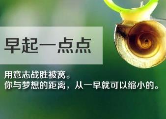 每天改进一点点,不久,你会发现,那将是两个不同人生的差距拉风的人生。早起一点点,用意志战胜被窝,你与梦想的距离,从一早就可以缩小的。不说“不可能”,凡事第一反应,找方法,而不是找借口。发现问题,反思,而非急着辩解。…
